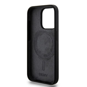 DKNY Liquid Silicone White Printed Logo MagSafe iPhone 15 Pro Case - Black
