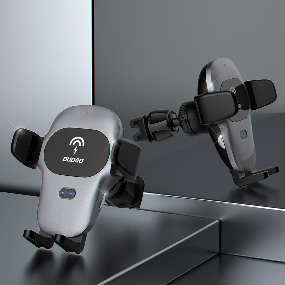 „Dudao F20xs“ automatinis automobilio laikiklis su įmontuotu 15 W belaidžiu „Qi“ įkrovikliu – pilkas