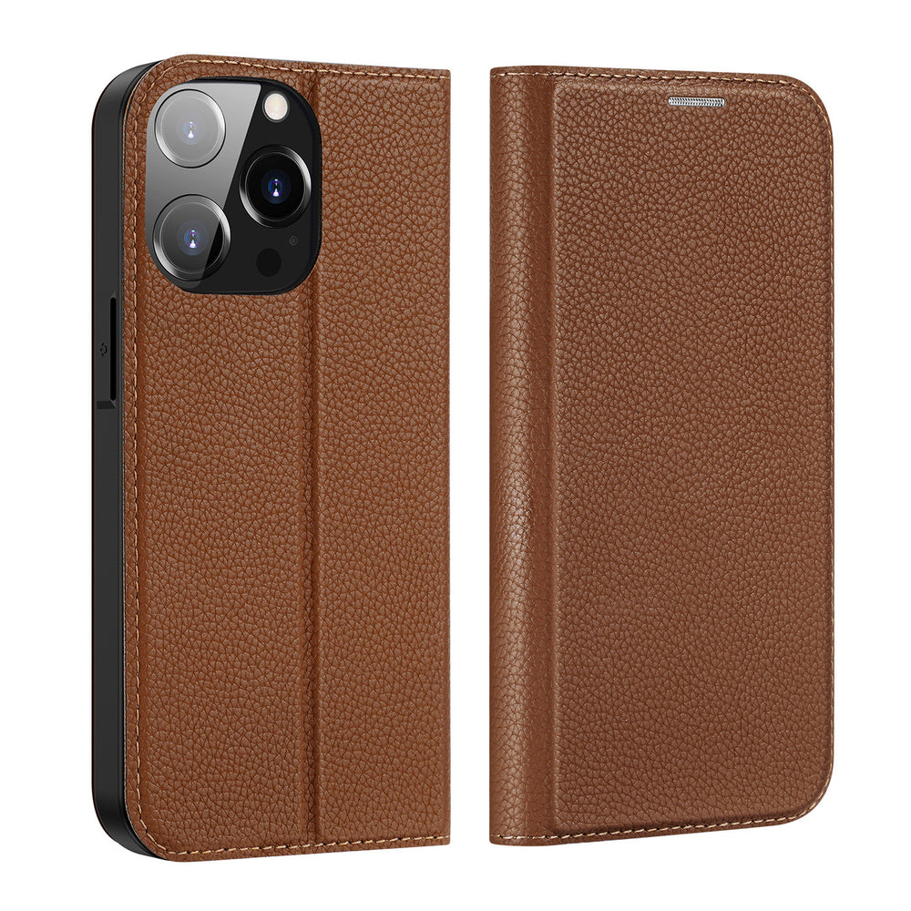 Dux Ducis Skin X2 case for iPhone 14 Pro case with magnetic flap brown