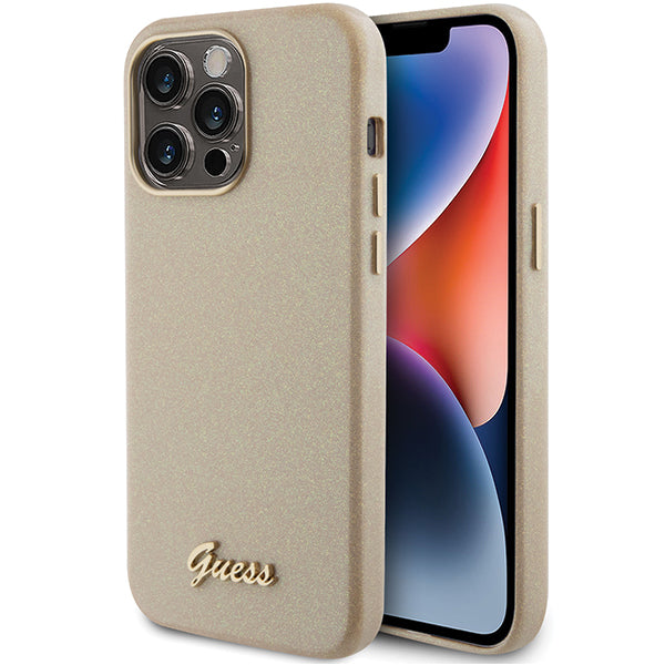 Guess Glitter Glossy Script case for iPhone 15 Pro Max - gold