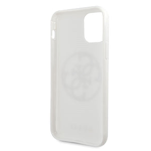 Guess GUHCN65TPUWHGLG iPhone 11 Pro Max baltas/baltas kietas dėklas su blizgučiais ir apskritimo formos logotipu