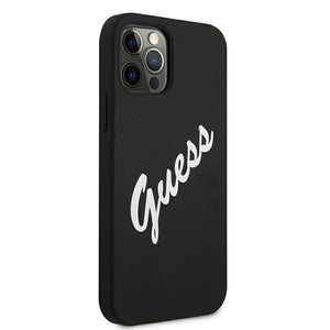„Guess“ GUHCP12LLSVSBW iPhone 12 Pro Max 6.7" kietas silikoninis dėklas, juodas/baltas, vintažinis