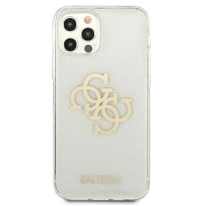 Guess GUHCP12LPCUGL4GTR iPhone 12 Pro Max 6.7" skaidrus kietas dėklas su blizgučiais ir dideliu logotipu 4G telefonui