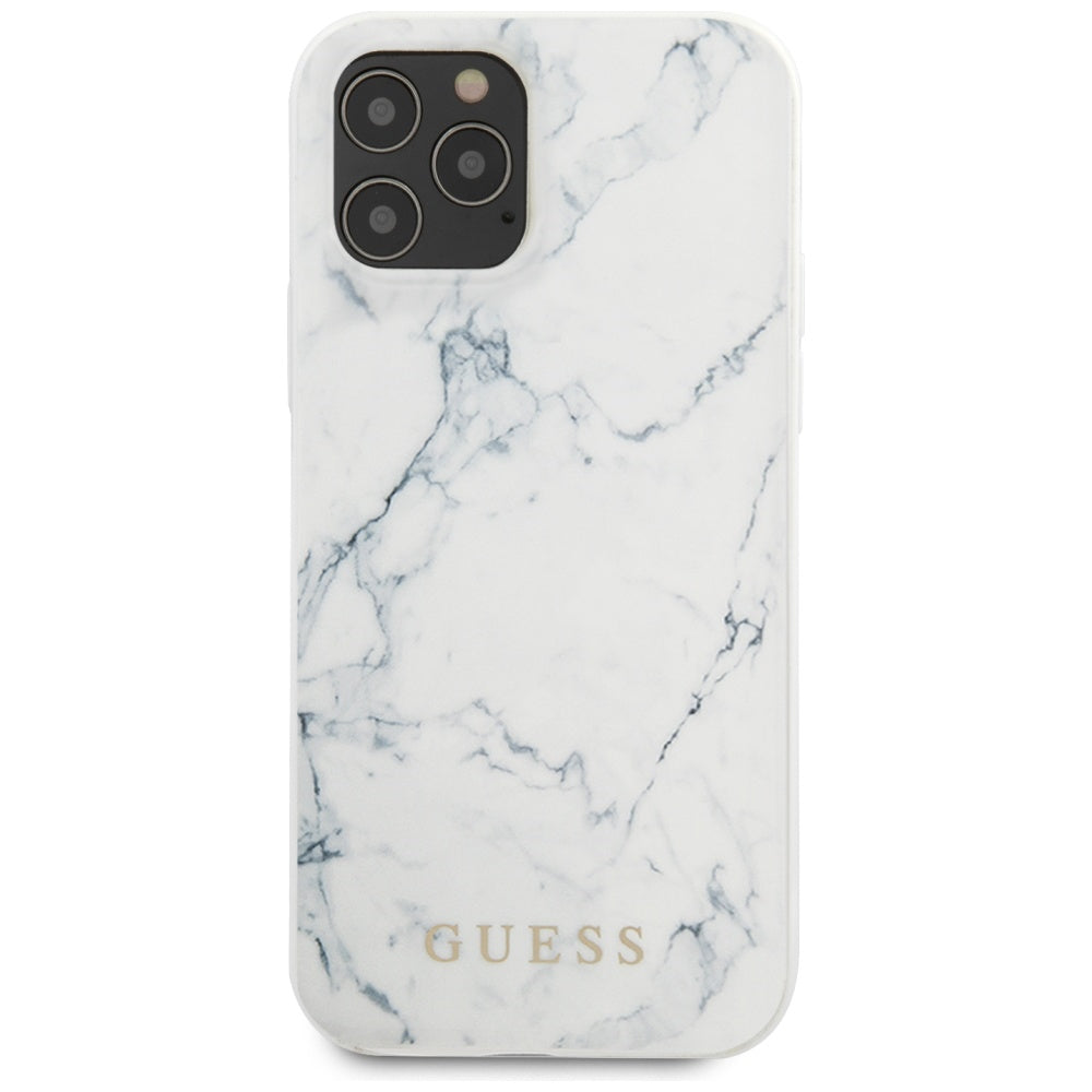 Guess GUHCP12LPCUMAWH iPhone 12 Pro Max 6,7" baltos spalvos kietas dėklas, marmuras
