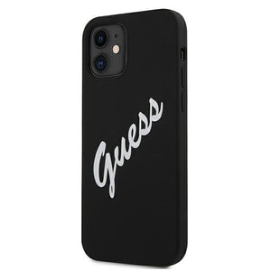 „Guess“ GUHCP12SLSVSBW iPhone 12 mini 5.4" kietas silikoninis dėklas, juodas ir baltas, vintažinis