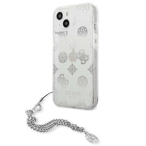„Guess“ GUHCP13SKPESI „iPhone 13 mini 5.4“ sidabrinis/sidabrinis kietas dėklas, „Peony Chain Collection“