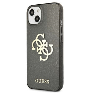 Guess GUHCP13SPCUGL4GBK iPhone 13 mini 5.4" juodas/juodas kietas dėklas su blizgučiais ir dideliu logotipu 4G