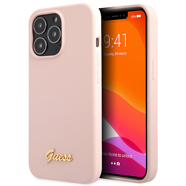 Guess GUHCP13XLSLMGLP iPhone 13 Pro Max 6.7" light pink/light pink hardcase Silicone Script Gold Logo