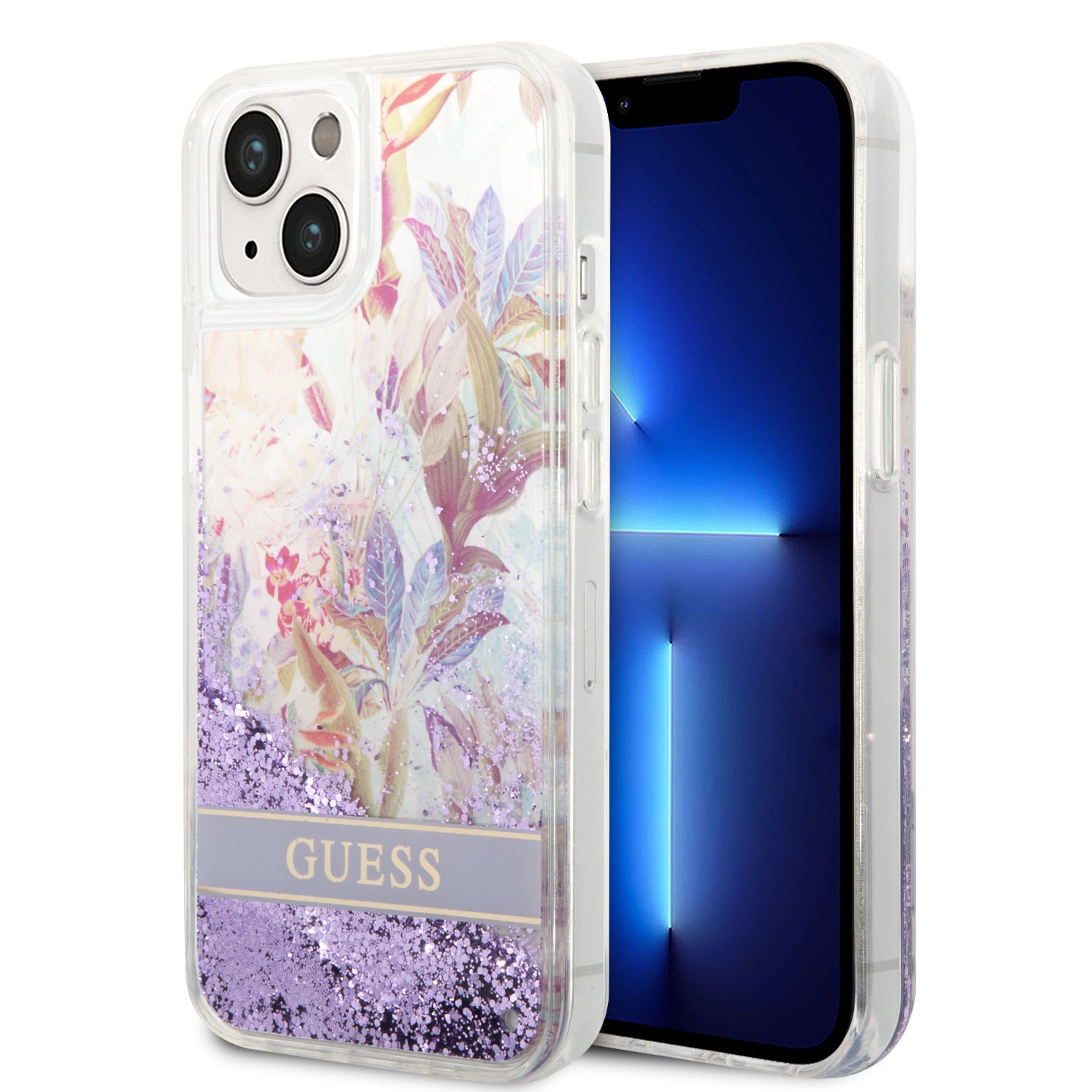 Guess GUHCP14MLFLSU iPhone 14 Plus 6.7 "violet / purple hardcase Flower Liquid Glitter