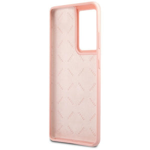 „Guess GUHCS21LLSVSPI S21 Ultra G998“ rožinis/rožinis kietu dėklu „Script Vintage“