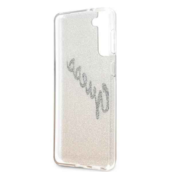 „Guess“ GUHCS21MPCUGLSGO S21+ G996 zlotų/aukso spalvos kietas dėklas su blizgučiais ir gradientu