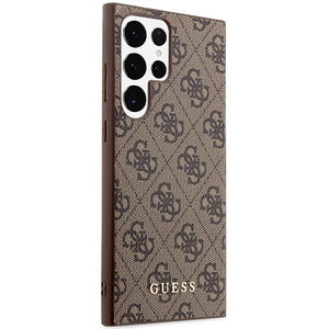 „Guess GUHCS23LG4GFBR S23 Ultra S918“ rudas/rudas kietas dėklas 4G metalinis auksinis logotipas