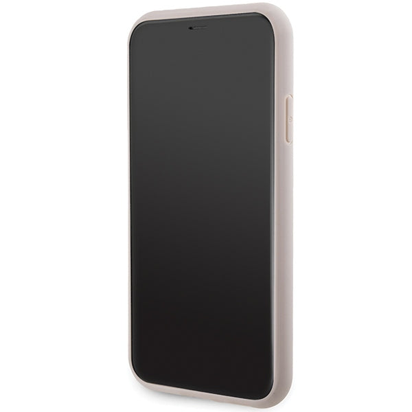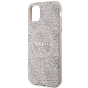 „Guess GUHMN61G4GFRP iPhone 11 6.1" / Xr“ rausvas/rožinis kietas dėklas, 4G kolekcija, odinis metalinis logotipas, „MagSafe“