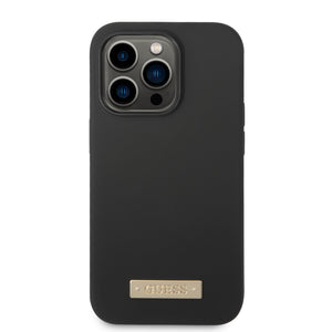 Guess GUHMP14LSBPLK iPhone 14 Pro 6.1" black/black hard case Silicone Logo Plate MagSafe