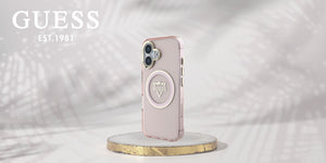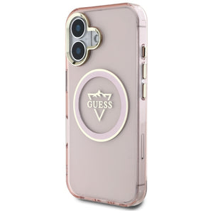 „Guess IML Metal Mountain Logo MagSafe iPhone 16“ dėklas – rožinis