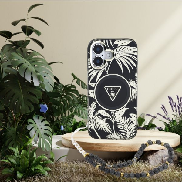 Guess Palm Trees Triangle Pearl Strap MagSafe case for iPhone 16