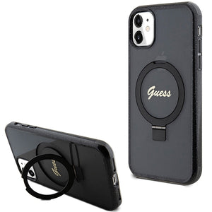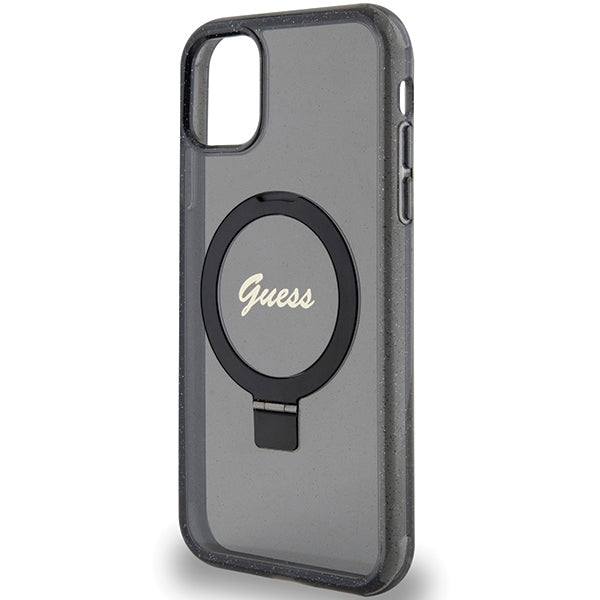Guess Ring Stand Script Glitter MagSafe case for iPhone 11 / Xr - black