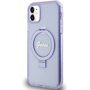 Guess Ring Stand Script Glitter MagSafe case for iPhone 11 / Xr - purple