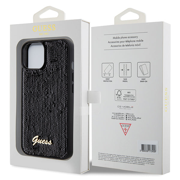 Guess Sequin Script Metal case for iPhone 14 / 15 / 13 - black