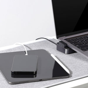 „Joyroom S-H121 Hub“ – tai praktiškas įkrovimo stotelės ir aušinimo kilimėlio derinys, sukurtas galvojant apie „MacBook Pro“ naudotojus. Jis pakelia nešiojamojo kompiuterio galinę dalį, pagerindamas oro srautą ir darbo komfortą, tuo pačiu suteikdamas prieigą prie 8 skirtingų prievadų. Jis palaiko itin greitą duomenų perdavimą iki 40 Gbps per „Thunderbolt 3“, perduoda vaizdus iki 5K raiška ir leidžia įkrauti kompiuterį per USB-C. Dėl kompaktiškų matmenų jis lengvai tilps į jūsų krepšį. Neslystantys kilimėliai užtikrina stabilumą ant bet kokio paviršiaus. Tai modernus ir funkcionalus priedas, kuris padidins jūsų nešiojamojo kompiuterio galimybes ir pasirūpins jo našumu.