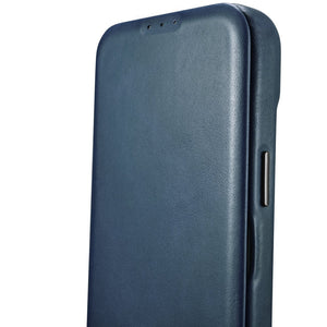iCarer CE Oil Wax Premium Leather Folio Case iPhone 14 Plus magnetic flip case MagSafe blue (AKI14220707-BU)