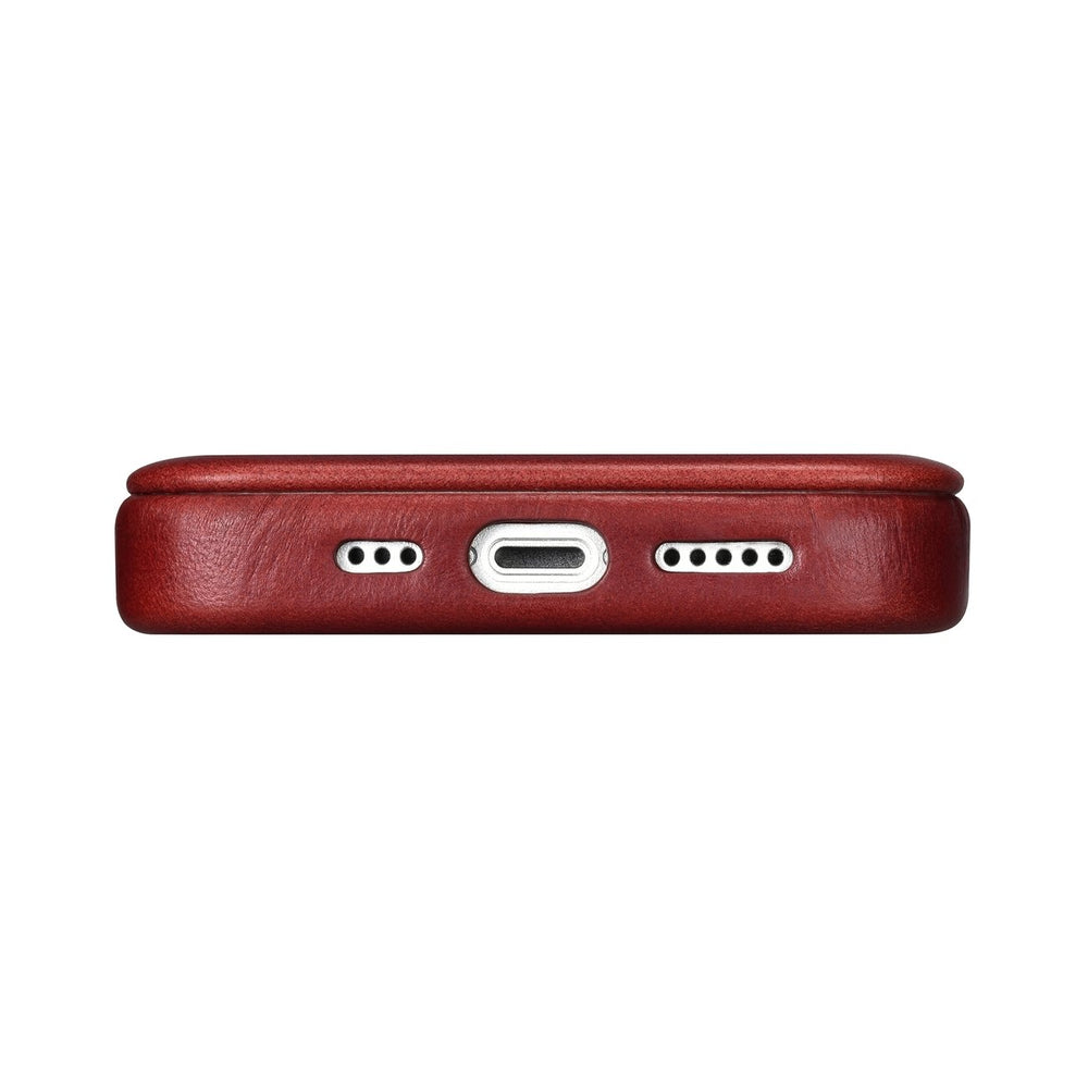 iCarer CE Oil Wax Premium Leather Folio Case iPhone 14 Plus Magnetic Flip Leather Folio Case MagSafe Red (AKI14220707-RD)