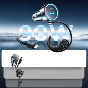 „Joyroom JR-CL07“ sujungia USB-A prievadą, USB-C prievadą ir integruotą USB-C laidą, todėl galite maitinti tris skirtingus įrenginius vienu metu – nereikalaujant skirstytuvų ar adapterių.
