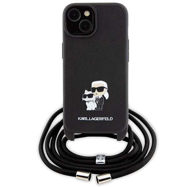 Karl Lagerfeld Crossbody Saffiano Metal Pin Karl & Choupette case for iPhone 15 - black