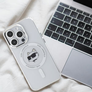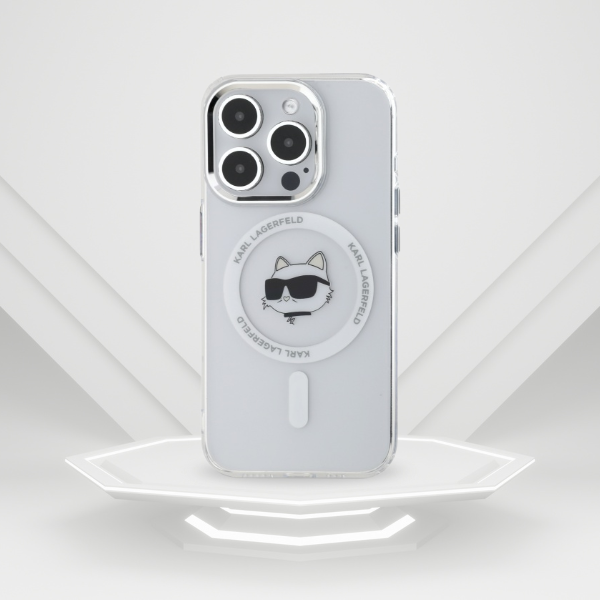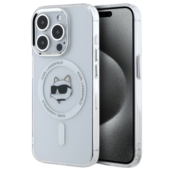 Karl Lagerfeld IML Metal Choupette Head MagSafe Case for iPhone 15 Pro Max - White