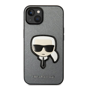 Karl Lagerfeld Saffiano Karl's Head Patch case for iPhone 14 - silver