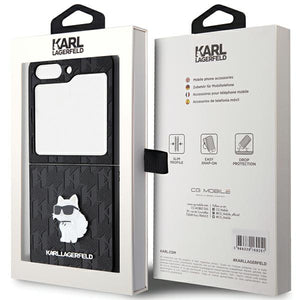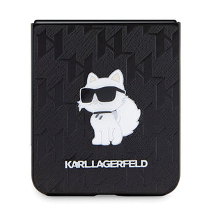 Karl Lagerfeld Saffiano Monogram Choupette Pin dėklas, skirtas Samsung Galaxy Z Flip 5 - juodas