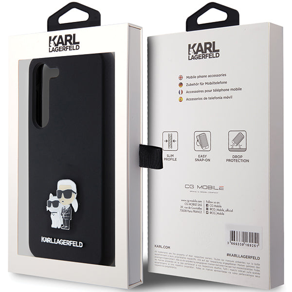 „Karl Lagerfeld“ silikoninis „Karl&Choupette“ metalinis dėklas, skirtas „Samsung Galaxy S23“ - juodas