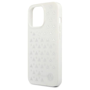 „Mercedes“ sidabrinis žvaigždžių rašto dėklas, skirtas „iPhone 13 Pro Max“ – baltas