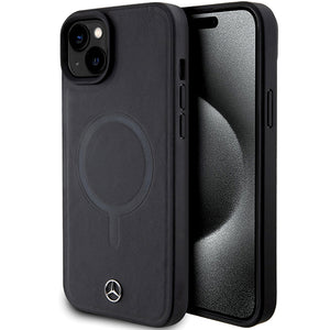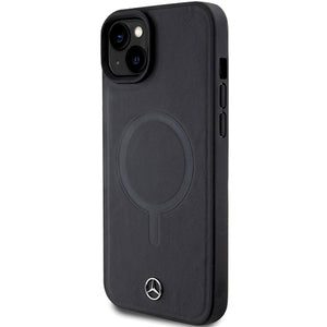 Mercedes Smooth Leather MagSafe case for iPhone 15 Plus - black
