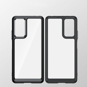 - Hybrid case with a rigid back and a flexible frame.