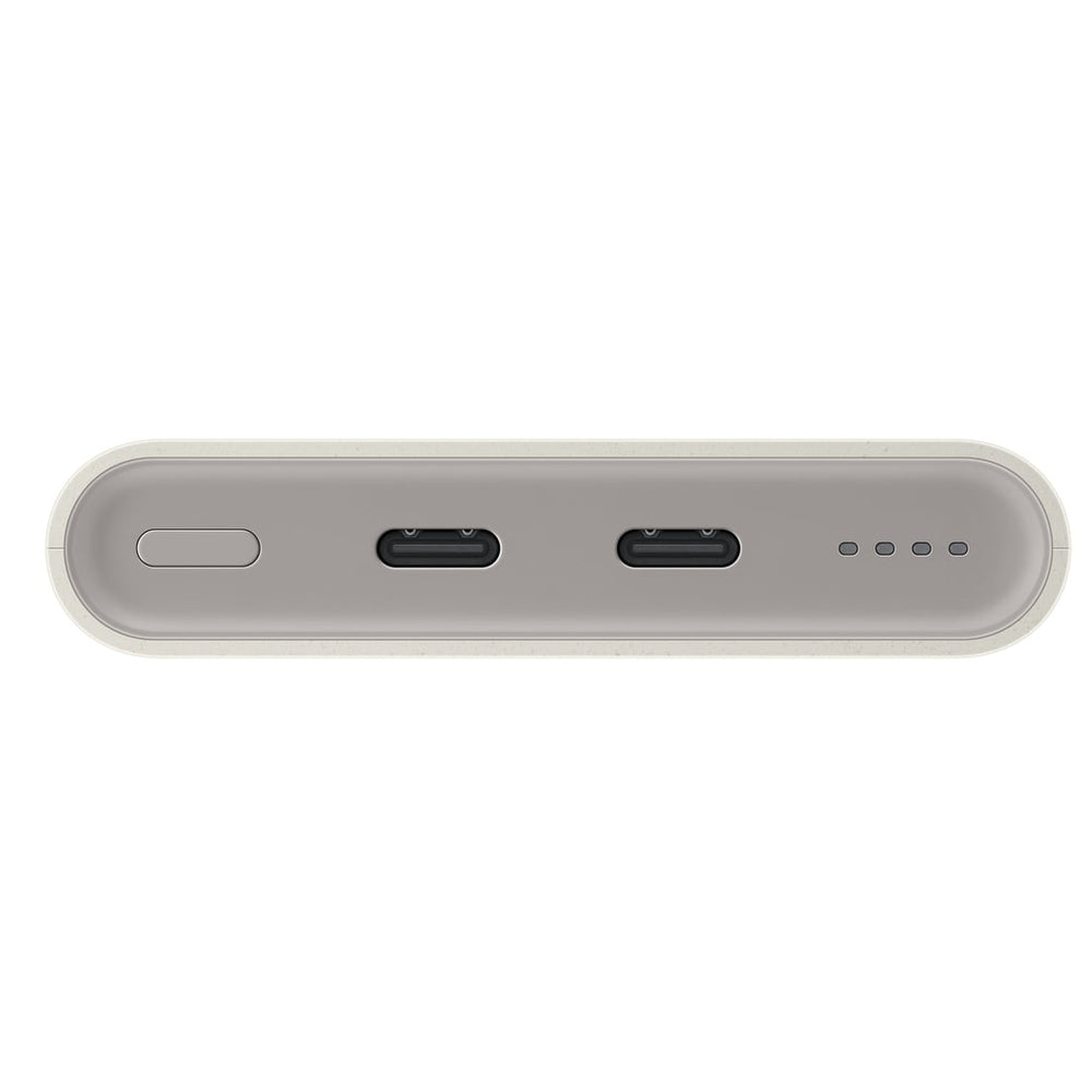 Smėlio spalvos apdaila suteikia elegancijos, o kompaktiškas dizainas leidžia lengvai pasiimti išorinę bateriją į bet kurią kelionę. Dėl lengvumo ir dydžio ji nepastebima jūsų bagaže.