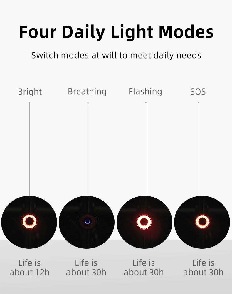 Automatinis šviesos intensyvumo padidinimas stabdant yra labai svarbus siekiant padidinti saugumą važiuojant naktį. Ši funkcija ne tik informuoja kitus eismo dalyvius, kad lėtinate greitį, bet ir efektyviai padidina jūsų dviračio matomumą.