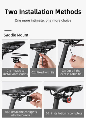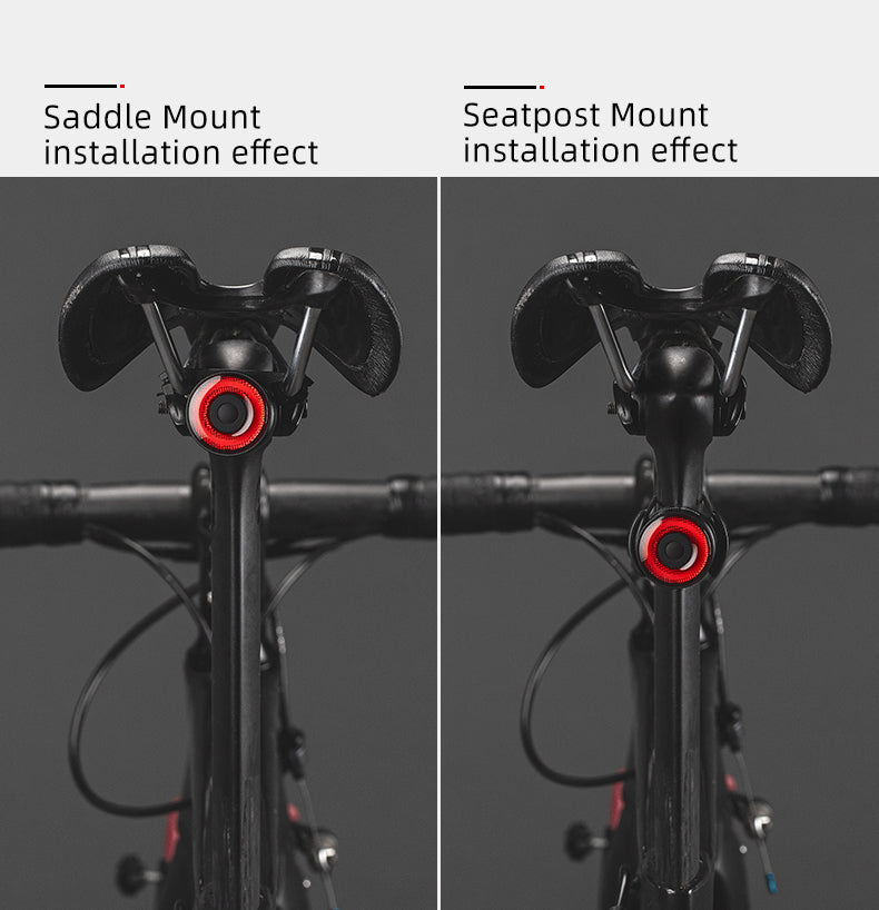 „Rockbros Q3“ galinis dviračio žibintas su išmaniąja stabdymo sistema – juodas