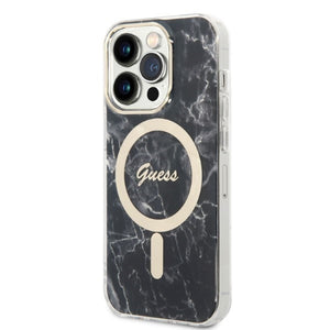 Set Guess GUBPP14LHMEACSK Case+ Charger iPhone 14 Pro 6.1" black/black hard case Marble MagSafe