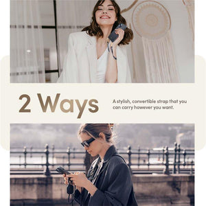 The Classic Charm can be worn in two ways: as a shoulder bag or as a hand strap.
