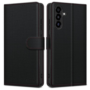 „Tech-Protect Wallet RS“ – elegantiškas ir patvarus dėklas, kuriame dera klasikinis stilius ir originalus dizainas. Jis pasižymi šiurkščiu paviršiumi, užtikrinančiu saugų sukibimą, ir stilingomis raudonomis siūlėmis, suteikiančiomis jam charakterio.