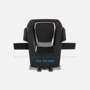Universalus automobilinis telefono laikiklis su ilga teleskopine rankena , kurios ilgis svyruoja nuo 11,8 iki 16,5 cm . Pagamintas iš aukštos kokybės medžiagų ( PC + silikonas ), jį galima tvirtinti tiek prie prietaisų skydelio , tiek prie priekinio stiklo . Skirtas išmaniesiems telefonams, kurių plotis yra nuo 5,5 iki 8,5 cm . Be to, priedas turi vieno prisilietimo tvirtinimo sistemą , kuri užfiksuoja ir atlaisvina įrenginį vos vienu piršto paspaudimu. Visiškai reguliuojamas ir 360 laipsnių pasukamas laikiklis leidžia nustatyti jį idealioje žiūrėjimo padėtyje, kad vairuojant jis neužstotų regėjimo lauko.