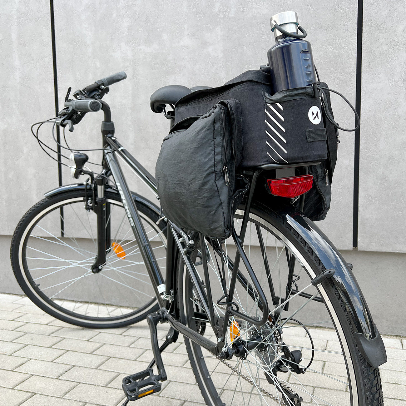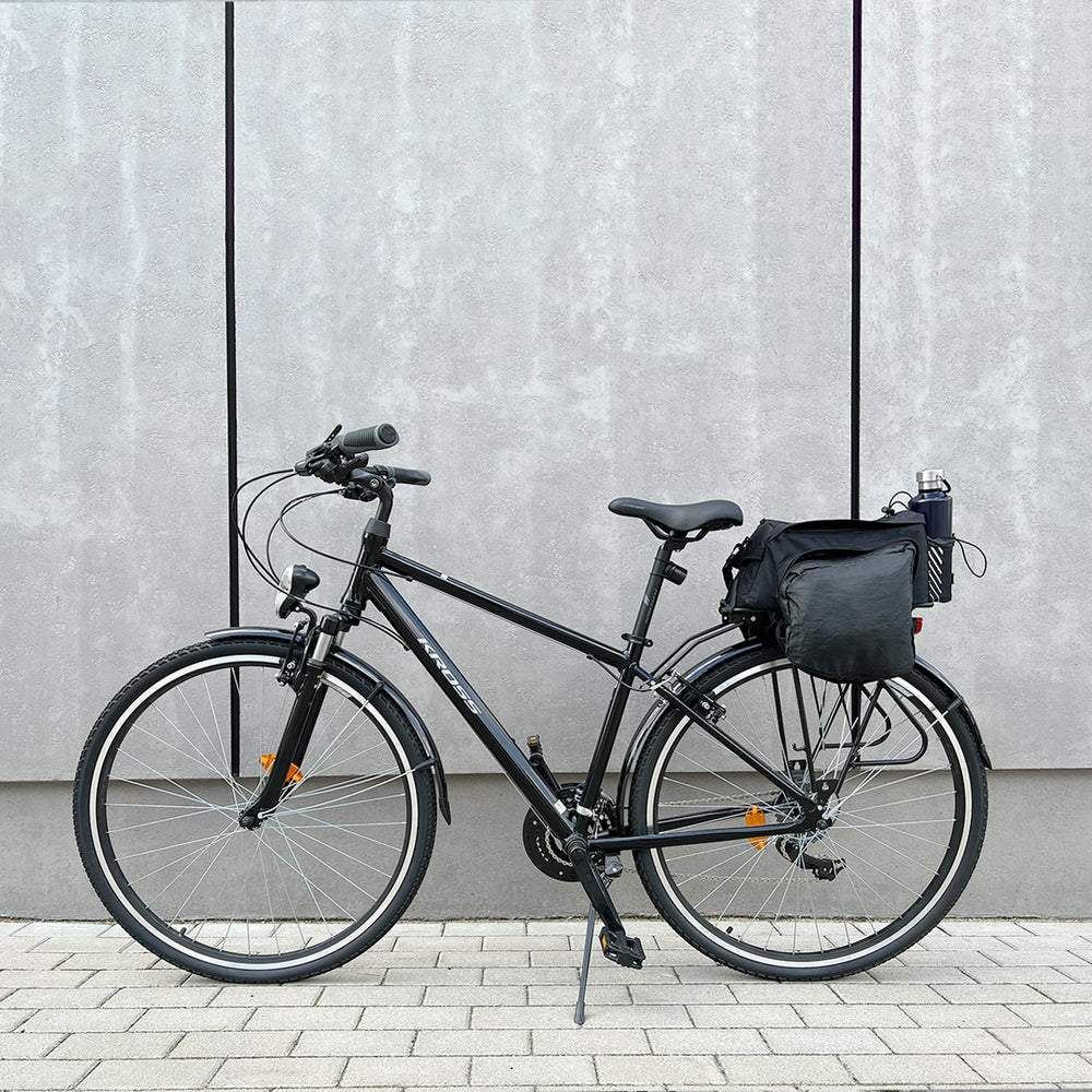 Gerai suprojektuotas dviračių bagažinės krepšys
