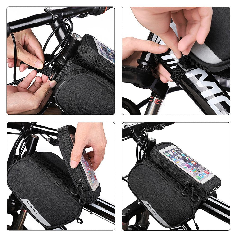 - Jis tarnaus jums ilgai . Dviračio rėmo krepšys pasižymi aukštos kokybės detalėmis, pvz., tvirtais užtrauktukais, patogiomis diržo kilpomis, sutvirtinimais.